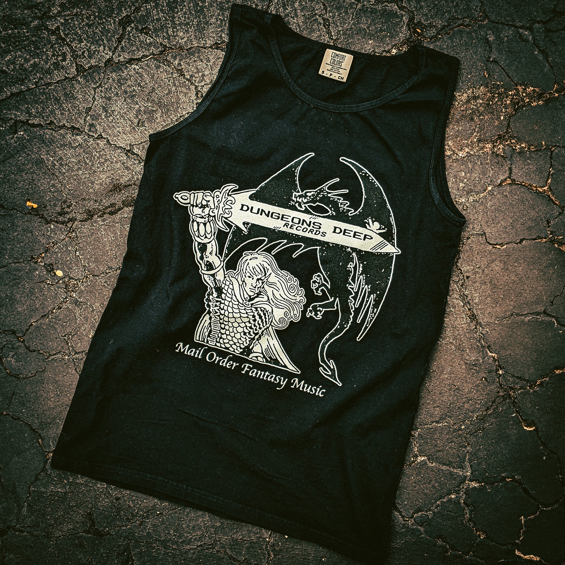 Mail-Order Fantasy Music design screen printed on black Comfort Colors Tank Tops
